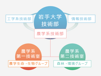 岩手大学技術部農学系技術部は、岩手大学技術部を構成する一ユニットで、技術系専門職員の能力・資質の向上と優れた人材の確保・育成及び技術の継承・保存を図り、教育研究における技術支援業務等の円滑な遂行に資することを目的に設置されています。