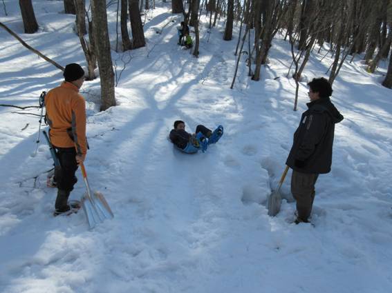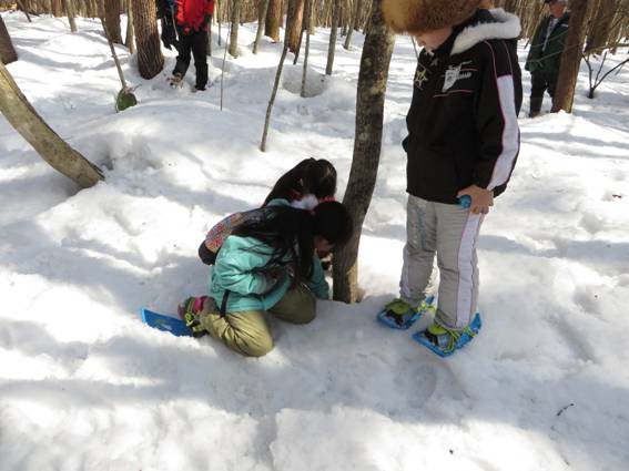 半日強という短い時間でしたが、知りあって間もない子とお友達になったり、普段行く機会のない雪深い林の中で新しい発見があったり、雪の中をうまく歩けけるようになったりと、参加者それぞれに楽しんでいただけたようです。